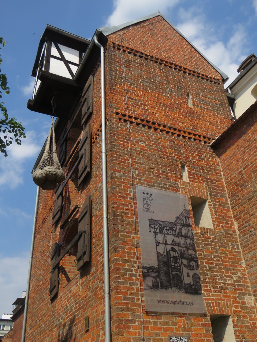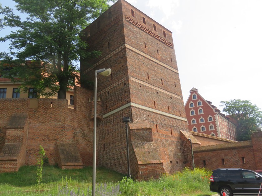 We stayed at another Gotyk Hotel in Toruń, not related to the Gotyk House in Gdańsk expect for their vintage. This hotel was made by joining and renovating four fourteenth century townhouses and is very nicely appointed. Unfortunately each night we had to make the decision whether to listen to the rowdy Euro Cup revellers or close our windows and boil in the un-air conditioned room. That notwithstanding, it was a very nice hotel. Toruń’s old town is fairly compact and is ideal for strolling and looking at the sights. We began at the Leaning Tower then followed the old defensive wall running parallel to the Vistula River.