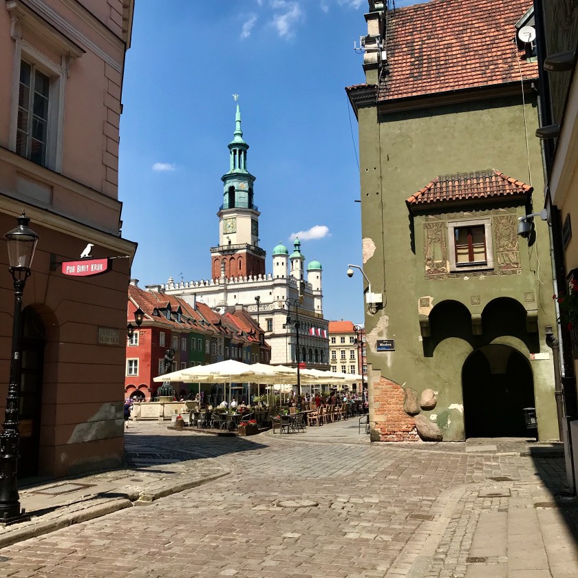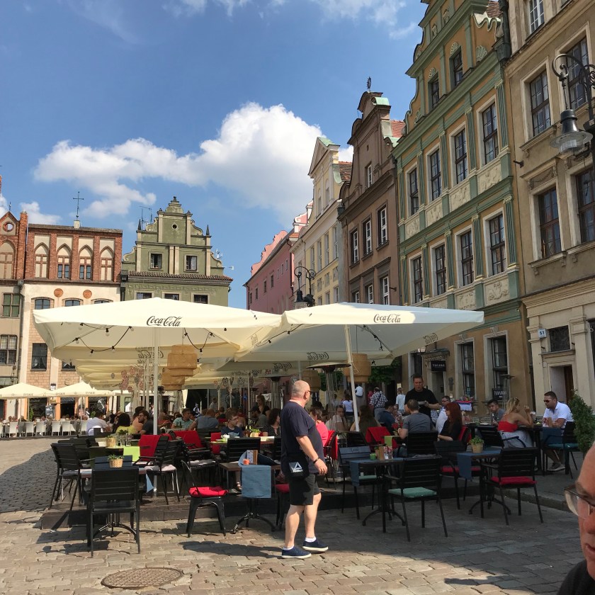 After a nice breakfast in our hotel we taxied to the train station where we boarded another train to our last Polish city, Poznan. Having driven through what looked like another modern city we arrived at our apartment. After a little confusion we climbed the four flights of stairs to our accommodations. Once we were settled in we asked the cute girl in the cafe how we could find the city square. She pointed, “Two minutes that way”. Another large old town square with plenty of cafes and restaurants. As it was getting fairly warm we quenched our thirst at an outdoor cafe. Having snooped around we sat down for dinner and a little relaxation.
