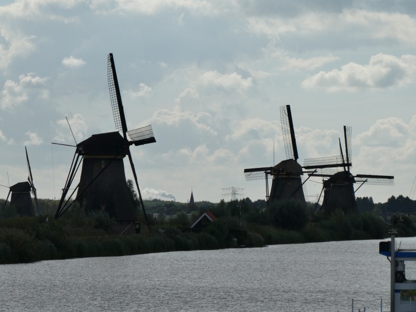 To get to Kinderdijk we took a forty minute ride on a water bus. Kinderdijk turned out to be prime windmill sighting. There are 19 18th century windmills at Kinderdijk. They were originally used to contain water levels between the river and the fields. Now they are used to maintain the level of the Dutch treasury. This World Heritage Site is a stop on Viking Cruiselines on the Rhine River Cruises. There are lots of tourists. We walked the dyke photographing the windmills then turned around and headed back to the waterbus stopping briefly at the gift shop.