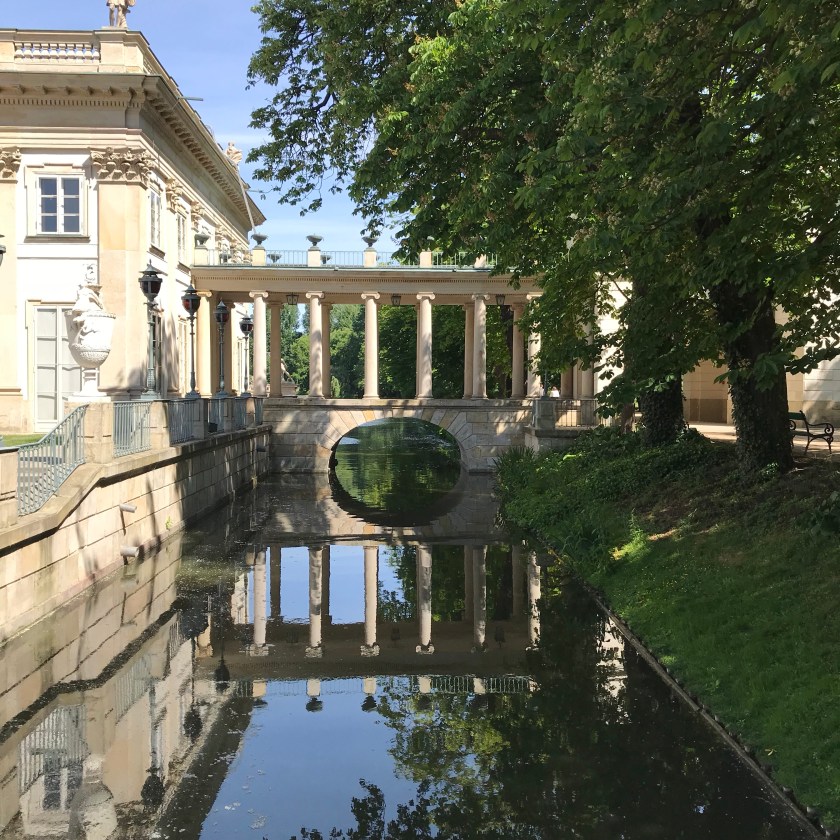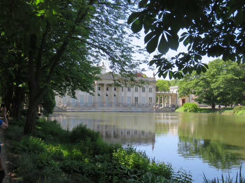 Łazienki Park is noteworthy for two things – the King’s summer palace and open air Sunday Chopin concerts. The summer Palace spans the lake.