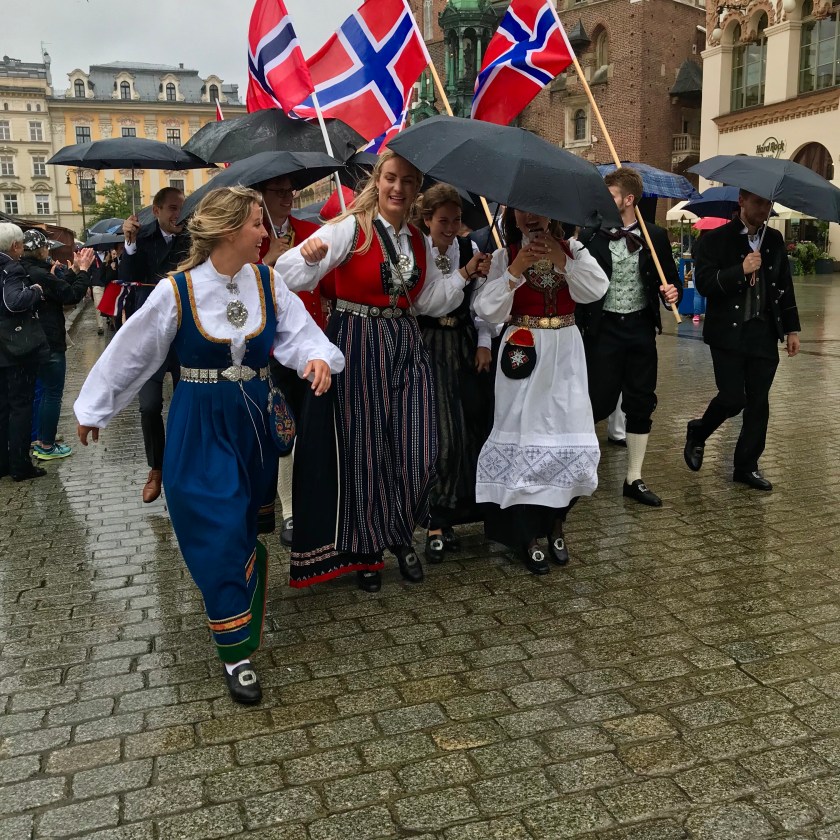 We were a bit hungry but because we had plans for the evening meal we headed to the Market Square where to our surprise a large “Happy Birthday Norway” celebration was in progress.