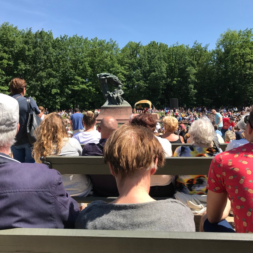 Having some time to kill before the concert we stopped for an ice coffee at Trou Madame, a little cafe in the park. The concert venue is an open air bowl with a large statue of Chopin sitting beneath a willow tree. We were lucky enough to find a bench as at concert time the place was packed. We enjoyed a pleasant hour of Chopin played by a very accomplished young woman.