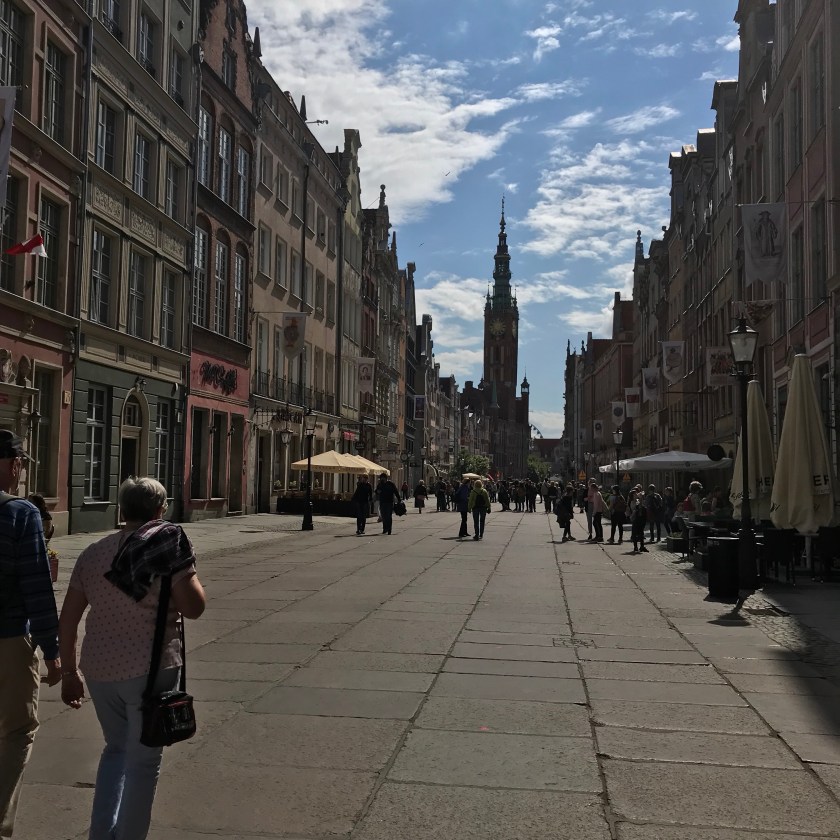 It is going to be a very hard call but Gdansk might be the prettiest city yet. It definitely has the highest concentration of beautiful buildings anywhere. First thing – our self-guided walking tour. Beginning at the Golden Gate, the main entrance to the Old Town, we proceeded down yet another Royal Way. You get whiplash craning your neck looking up at all the beautiful buildings. Gdansk was for a long time the richest city in Poland. It was the export centre for grain from the Ukraine and Poland. It was a member of the Hanseatic Trade League and the rich merchants built their mansions along this street.